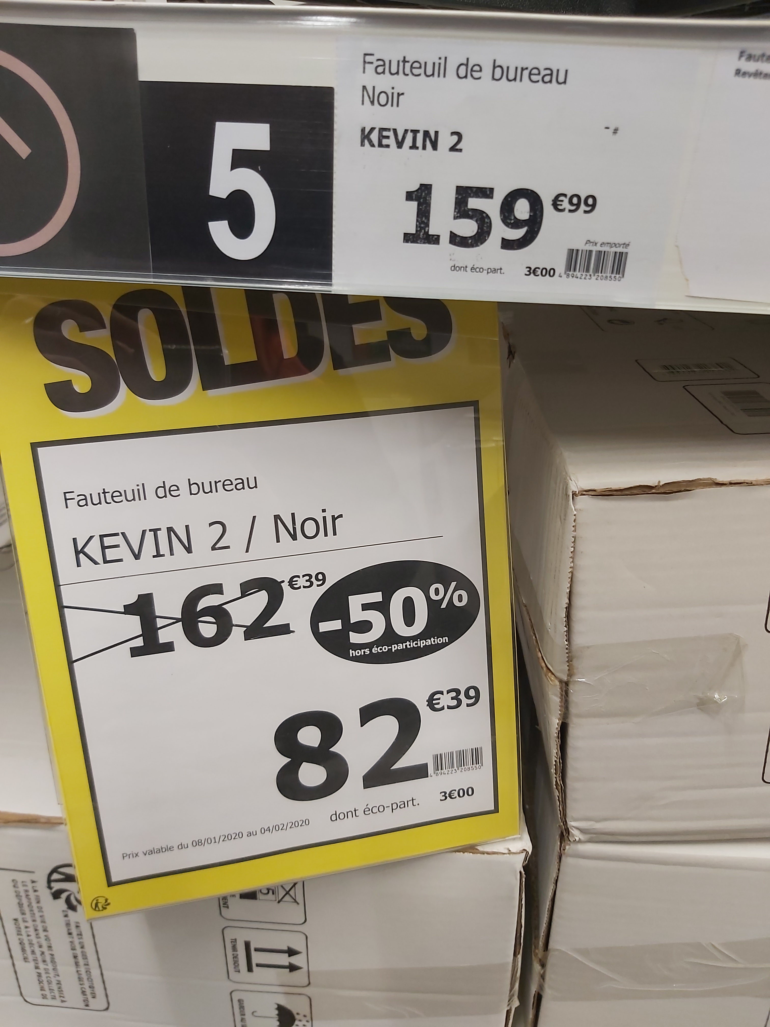 Posté le 11/01/2020 à 19:35"Les prix sont bizarres , le prix barré avant solde sur l'étiquette et plus cher que le prix affiché normalement en rayon!! Que croire!!"